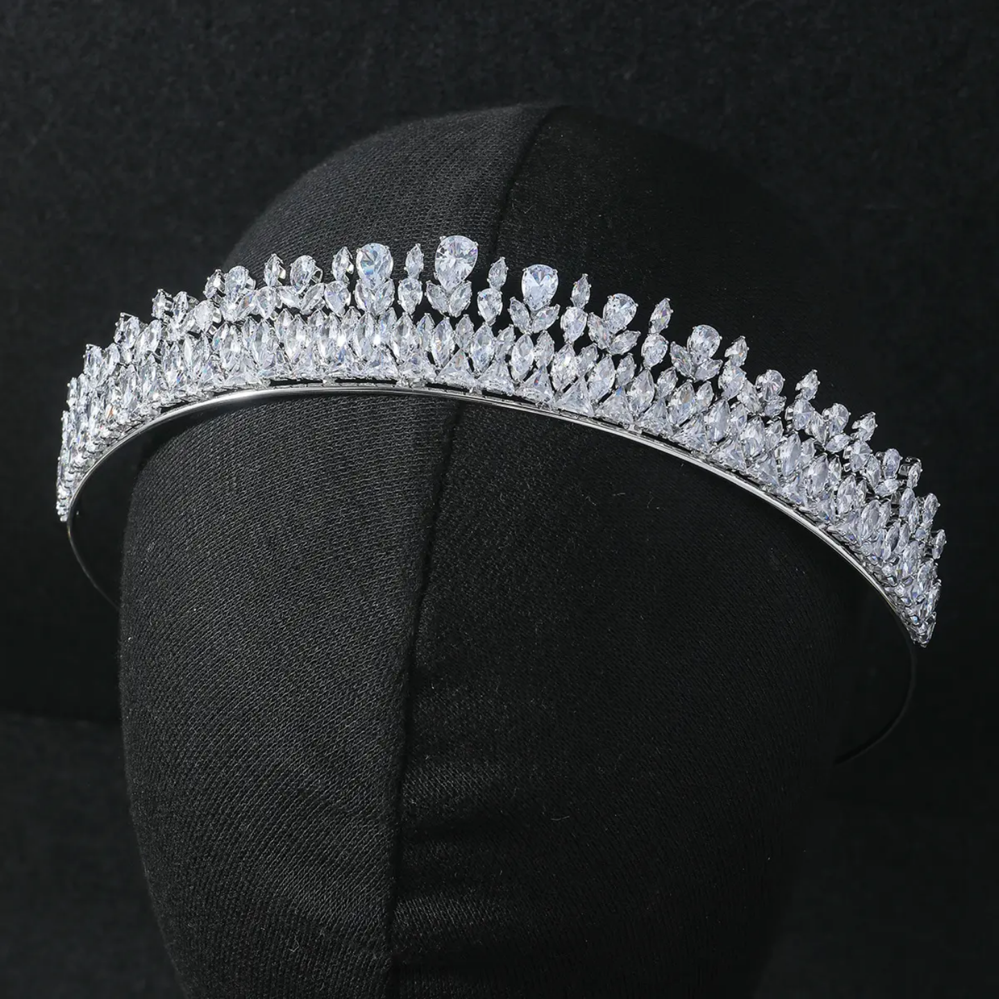 Mooncrest Royale is an exquisite handcrafted silver crown, inspired by the quiet elegance of moonlight resting atop a royal crest. Its thick, commanding structure is adorned with intricate detailing that shimmers like lunar light, casting a soft yet powerful radiance. Designed for brides, queens, and those who wish to make an unforgettable statement, this crown embodies both strength and grace. Whether worn for a wedding, pageant, or grand celebration, Mooncrest Royale transforms any look into a vision of celestial royalty.